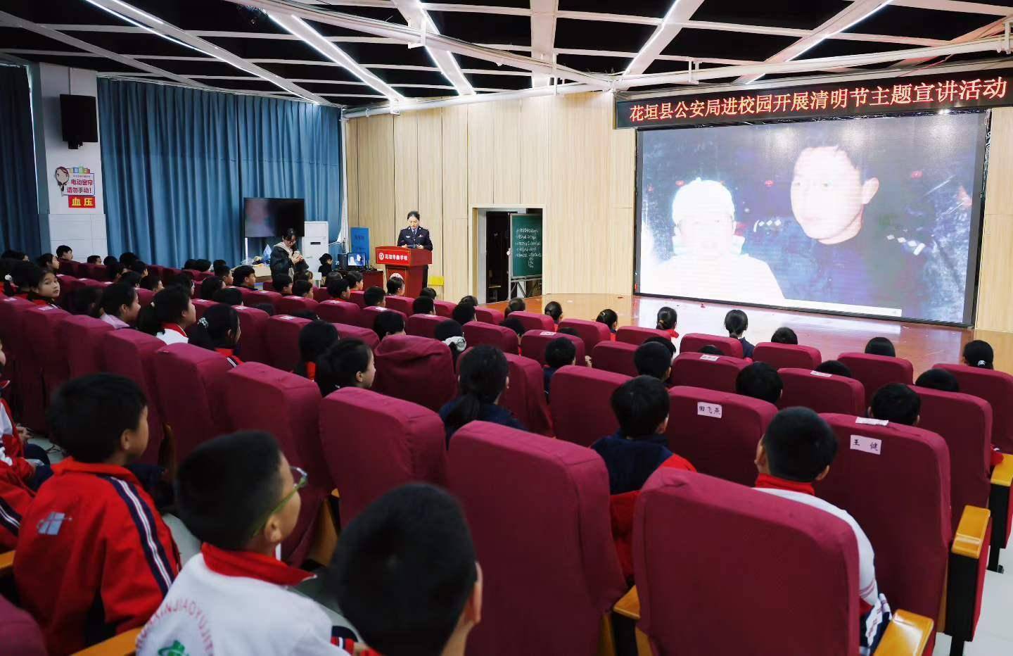宣讲现场,政工室民警用通俗易懂的语言,结合清明节主题向学校师生讲述花垣公安3名公安烈士、7名因公牺牲民警的英雄事迹。
